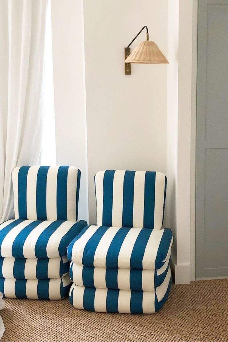 Hơi thở của biển: Mùa hè là mùa của những chuyến nghỉ mát. Hãy đưa một chút không khí biển vào căn nhà của bạn như ghế sofa màu xanh nước biển, thảm đay, đèn treo tường lấy cảm hứng từ đại dương sâu thẳm.